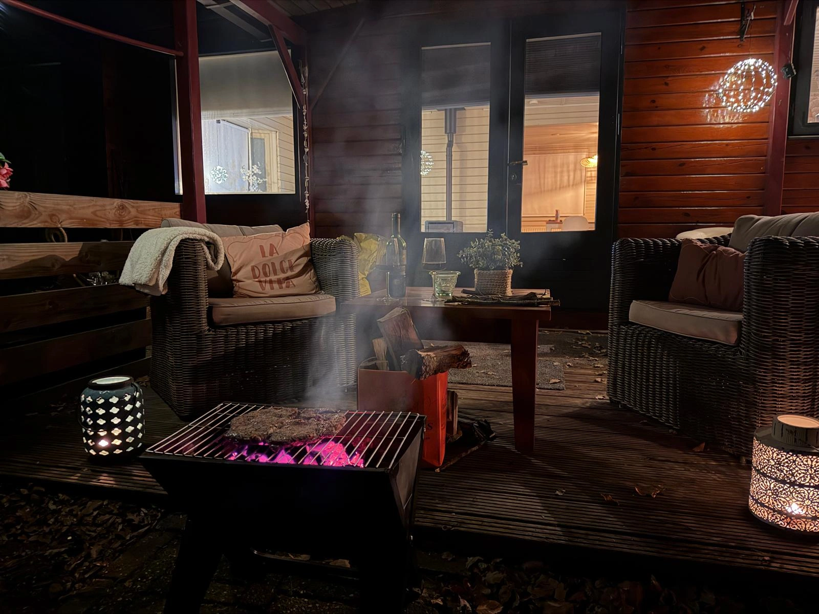 Binnen voelt de blokhut licht en comfortabel aan. Buiten geniet je van de privacy van de tuin en de ruimte om echt even offline te zijn. Hier hoef je niets. Hier mag je gewoon zijn.